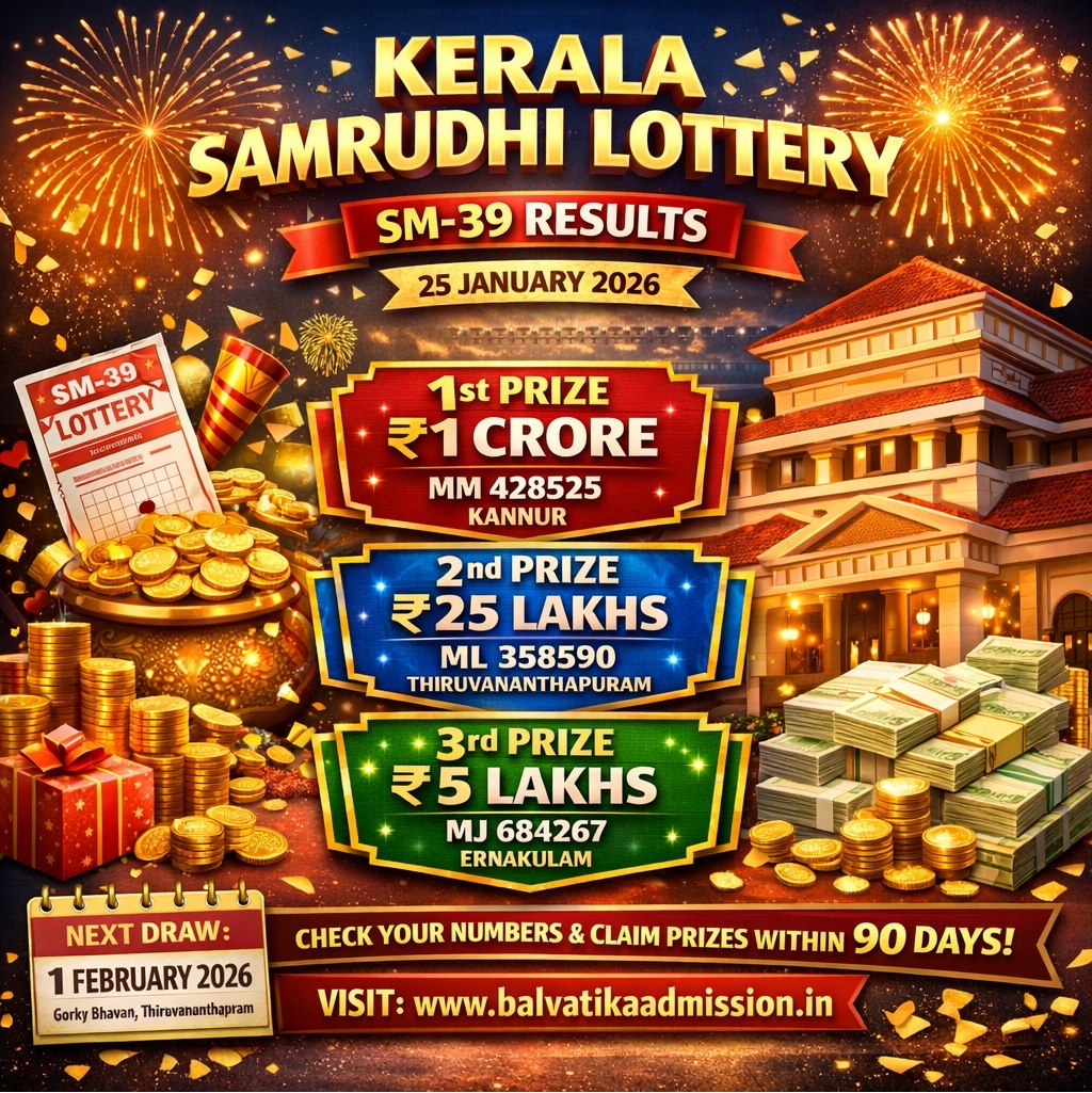 Kerala Samrudhi Lottery SM-39 Result – 25 January 2026; The Kerala State Lotteries Department has officially released the Samrudhi Lottery SM-39 results for the draw held on 25 January 2026 at 3:00 PM from Gorky Bhavan, near Bakery Junction, Thiruvananthapuram. The draw brought exciting winnings to thousands of hopeful participants across the state.